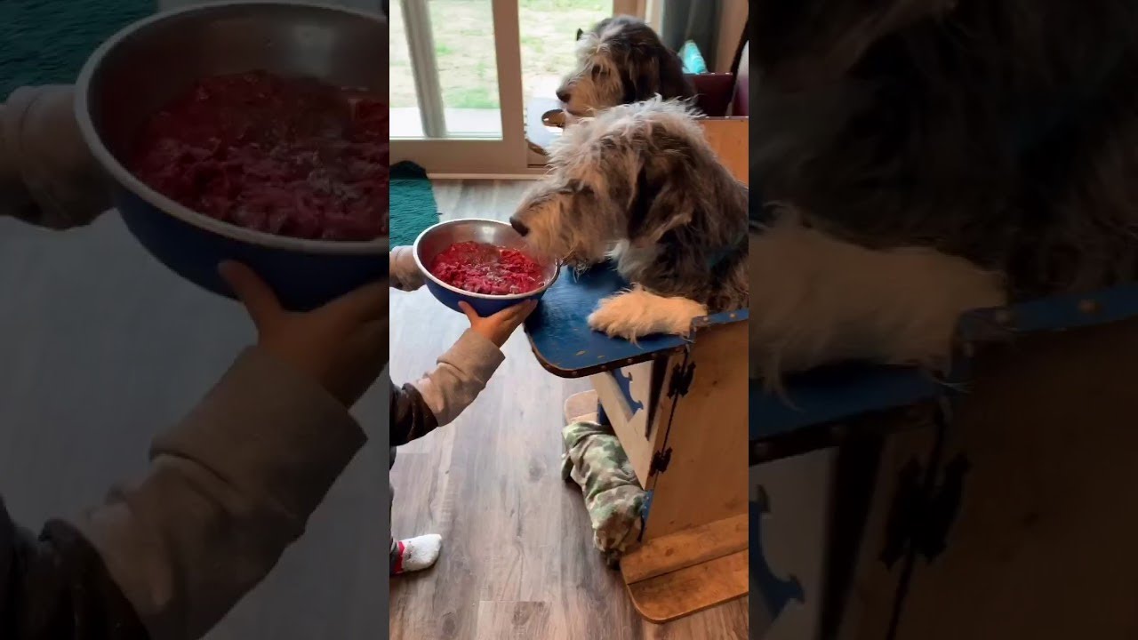 Occurred on September 7, 2019 / Princeton, Minnesota, USA "My husband Nathan and I rescue megaesophagus, or ME, dogs. We currently have six dogs, four have (ME), three of which are from the same litter. My four-year-old niece Melanie was helping me feed tree of our dogs lunch. Penny is the husky, Max is the blue-eyed boy in the blue chair and Kiba is the bi-eyed boy in the maroon chair. They back into, then sit in their Bailey chairs, and are served raw meals by Melanie. Megaesophagus is an enlarged and weak esophagus requiring upright feedings so gravity can help food and water go into the stomach. The Bailey chairs are medical devices and necessary. They can live long, happy and healthy lives with proper management and care."