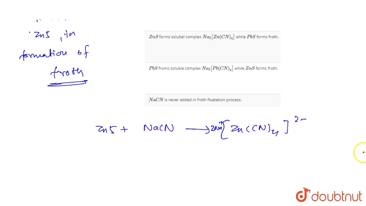 `NaCN` is sometimes added in the froth flotation process as a depressant when `ZnS` and `PbS